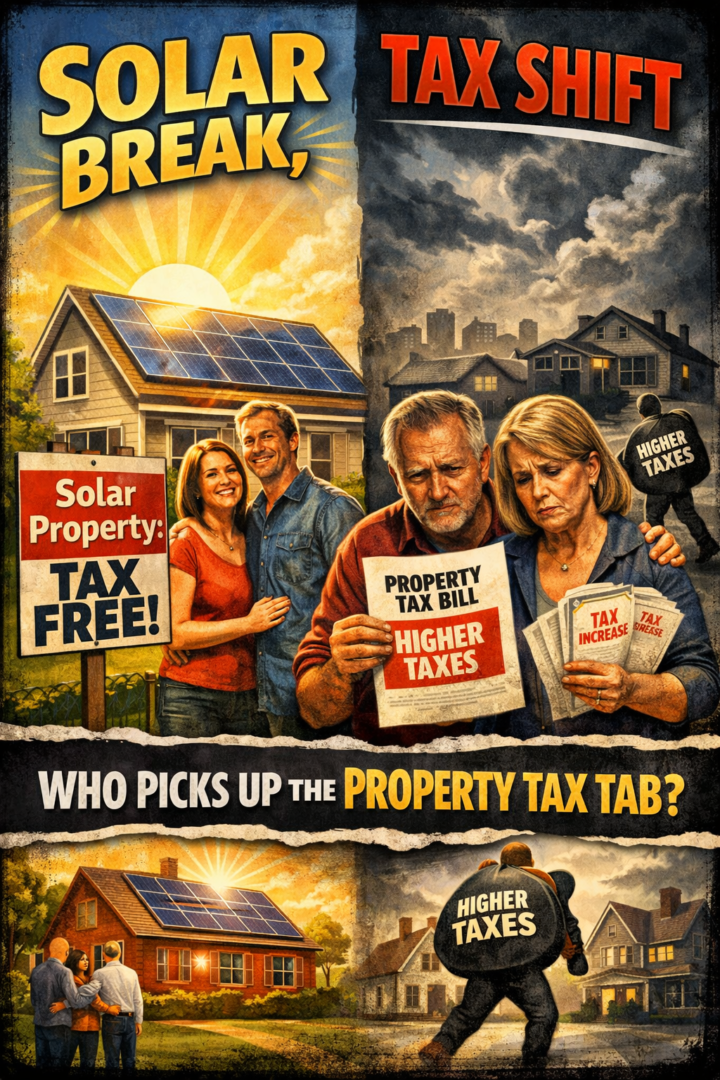 In a property tax system where towns must raise a fixed amount of revenue, any exemption — whether for solar, veterans, or other categories — doesn’t eliminate taxes; it reallocates them. The debate over solar isn’t about whether taxes exist, but about who ultimately pays a larger share of the same total bill.
